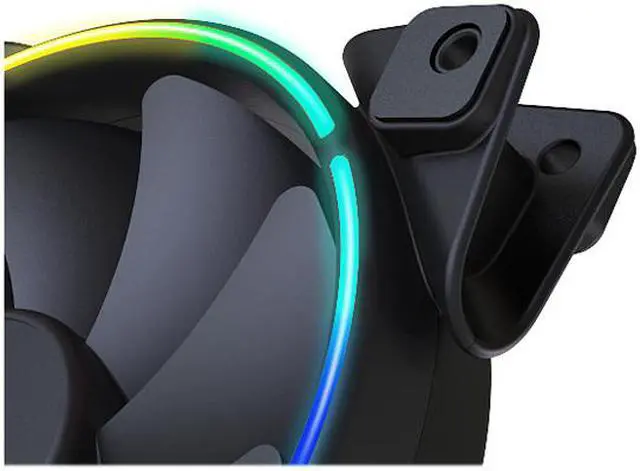 Double-sided ring ARGB glare effect design, creating a practical and beautiful cooling system. You also can turn on / off the fan light effect and switch fan hub’s RGB signal to motherboard 5V ARGB / 12V RGB port by remote.? Shockproof Design? The fan frame is fixed on both sides with 8 pieces of shock absorbing rubber pads. The rubber soft material which is not easy to peel off has good shock absorbing effect, which can make the internal operation of the computer case stably and reduce the noise output between the fan and the computer case.