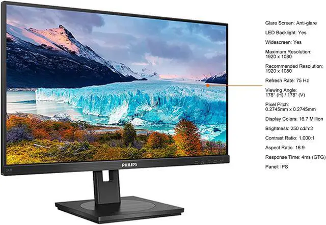 | Stand Adjustments | Height adjustment: 130 mm Pivot: -/+ 90 degree Swivel: -/+ 180 degree Tilt: -5 ~ 25 degree |