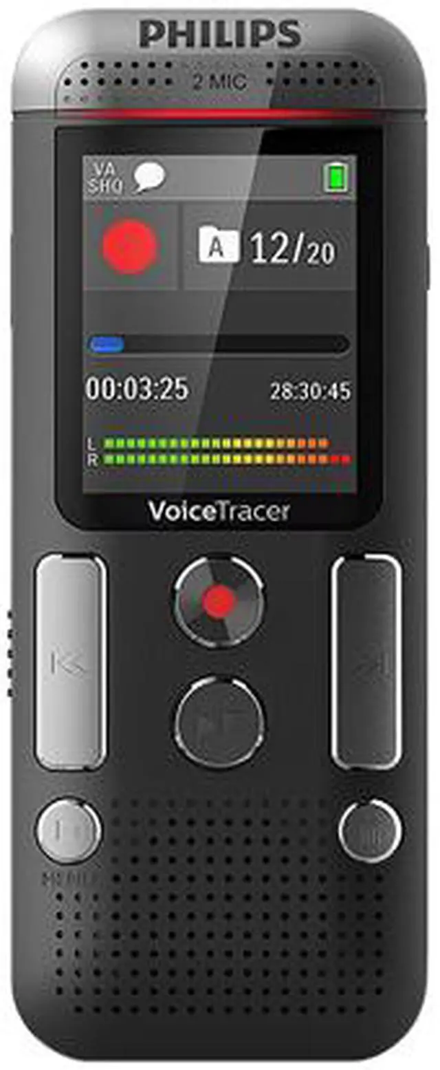 The two built-in stereo microphones are designed to deliver clear voice recordings and reduce background noise, even in loud environments. High-quality recording is essential for clear playback and accurate speech recognition results.