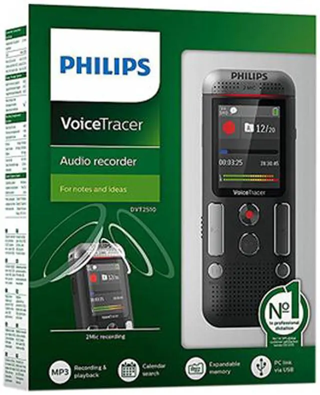 The VoiceTracer 2510 is perfect for capturing notes, ideas and thoughts on the go. Thanks to its two microphones, your recordings are captured in outstanding stereo quality. The large color display makes recording quick and easy.