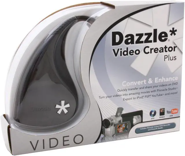 Video Transfer Made EasyWith the Pinnacle Dazzle Video Creator Plus and included video editing software, transfer your videos on DVD to share with your friends and family, or export recordings to iPod, PSP and YouTube so you can enjoy them anytime, anywhere.