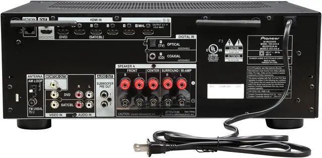 The Pioneer VSX-830-K delivers the high-resolution music playback you demand with support for 192 kHz 24-bit AIFF, WAV, and FLAC, Apple Lossless up to 96kHz 24-Bit and DSD (SACD) files at 2.8 MHz. Compressed formats, such as MP3, WMA, and AAC are also supported. Stream files from your home network, smartphone device, tablet, or even the front USB.