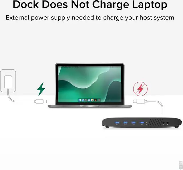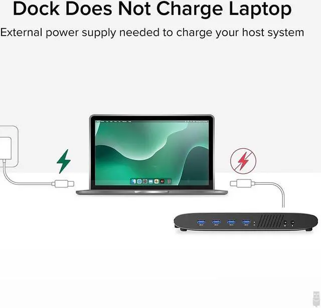 This docking station does not support host charging, we recommend using the systems separate power supply for optimal performance.