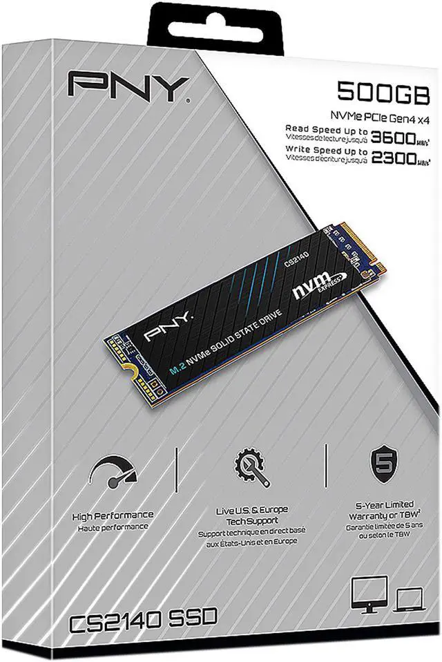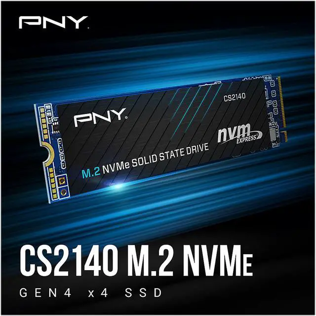 The PNY CS2140 M.2 NVMe Gen4 x4 Solid State Drive is an excellent choice for a mainstream performance upgrade in an NVMe Gen4 enabled desktop or laptop computer. Upgrade to the latest in NVMe technology and experience the enhanced performance of up to 3,600 MB/s seq. read and 3,200 MB/s seq. write speeds. Experience faster boot times, quicker application launches, and improved overall system performance using the CS2140 Gen4 technology. Do more in less time with NVMe Gen4 x4; boot up, power down, and load applications up to 6 times faster compared to SATA based SSD’s. Designed to deliver the performance you demand, and with no moving parts, the PNY CS2140 is highly durable, and less likely to fail.