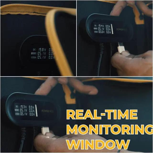 Patented LCD Display on Solar PanelsPowerness 120 watt Solar Panel is equipped with patented LCD display. You will be able to see instant charging status. Always clear about the efficiency of the solar panel and allow you to adjust the best placement position and angle for solar charging.