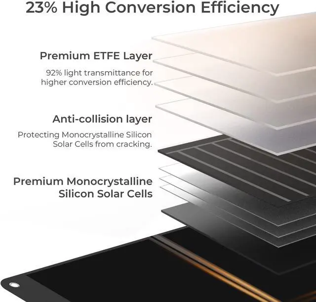 23% High Conversion EfficiencyThe Powerness SolarX S120 solar panel is designed to produce maximum power at all time. It's made by premium monocrystalline silicon solar cells, and has a conversion efficiency of 23%. Charge your devices faster than ever.