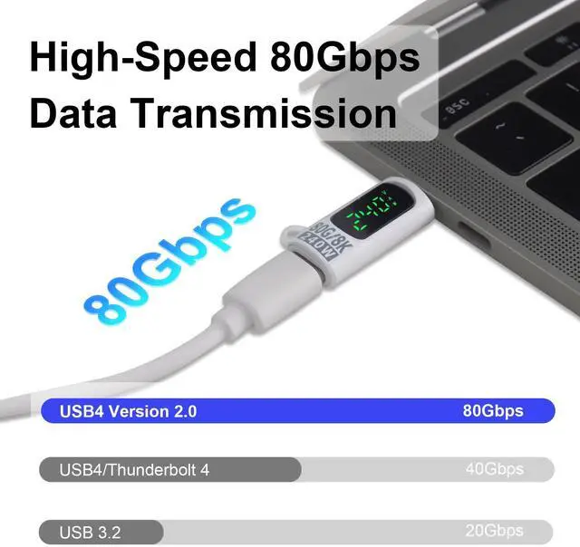 - [Universal USB-C Compatibility]The USB 4 cable fully supports the function of Thunderbolt 5. Seamlessly backward compatible with Thunderbolt 4 / 3, USB 3.2 Gen 2, USB 2.0. Compatible with the headphones, game controllers, power hubs, laptops, phones, and any USB 4/ Type C device.