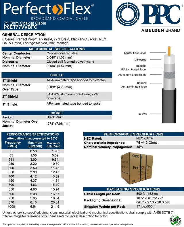Perfect Flex® Broadband Coax Cable is backed by the same quality and innovation you've come to know and expect from every PPC product. Belden has incorporated its extensive knowledge of the cable industry into a cost-effective coaxial cable product line offering superior performance, unmatched quality assurance practices, and environmentally friendly features.