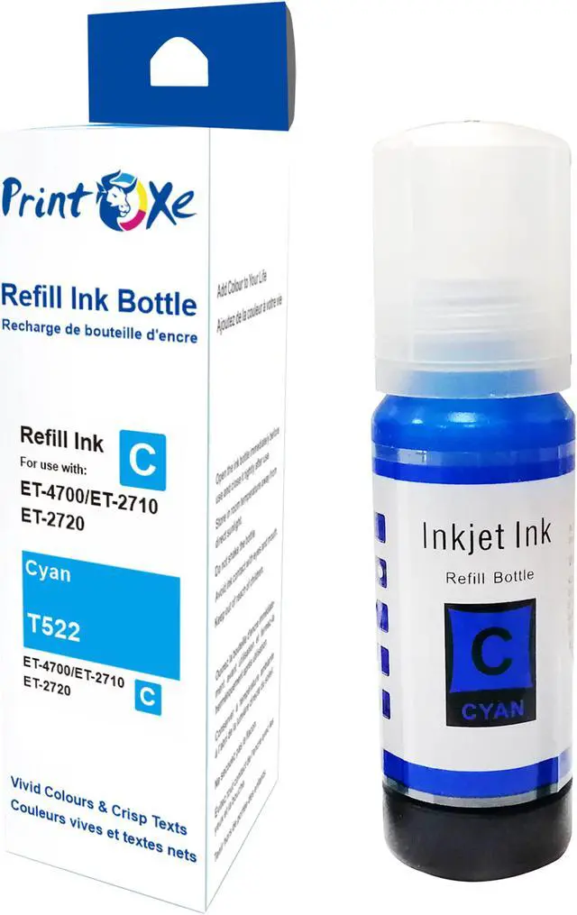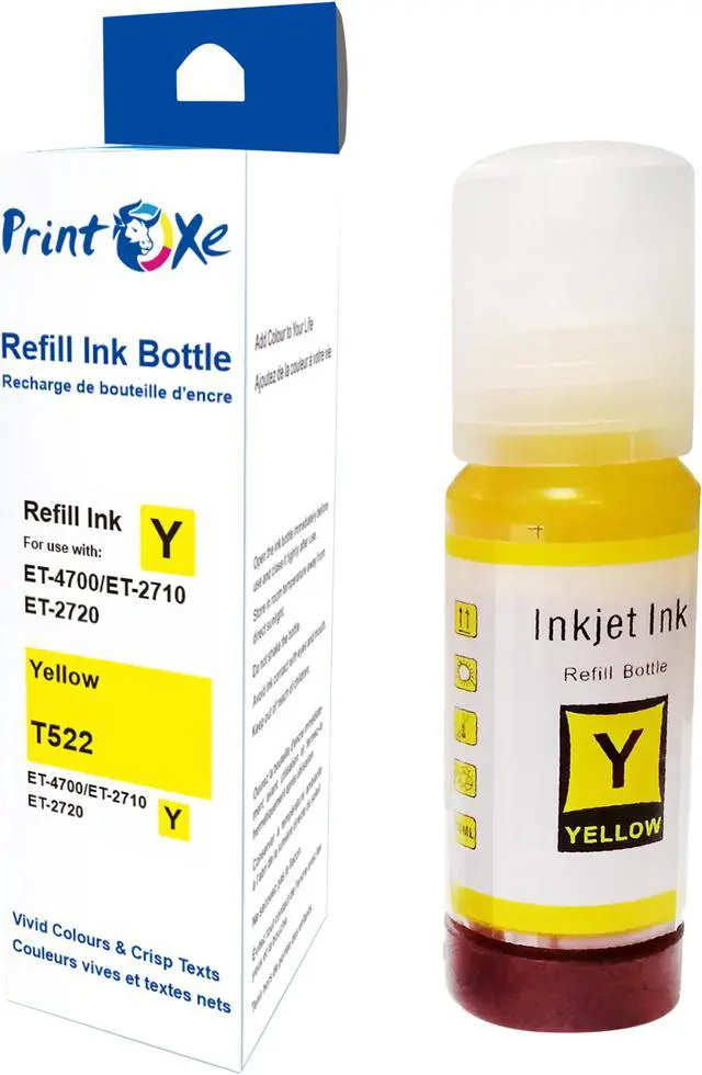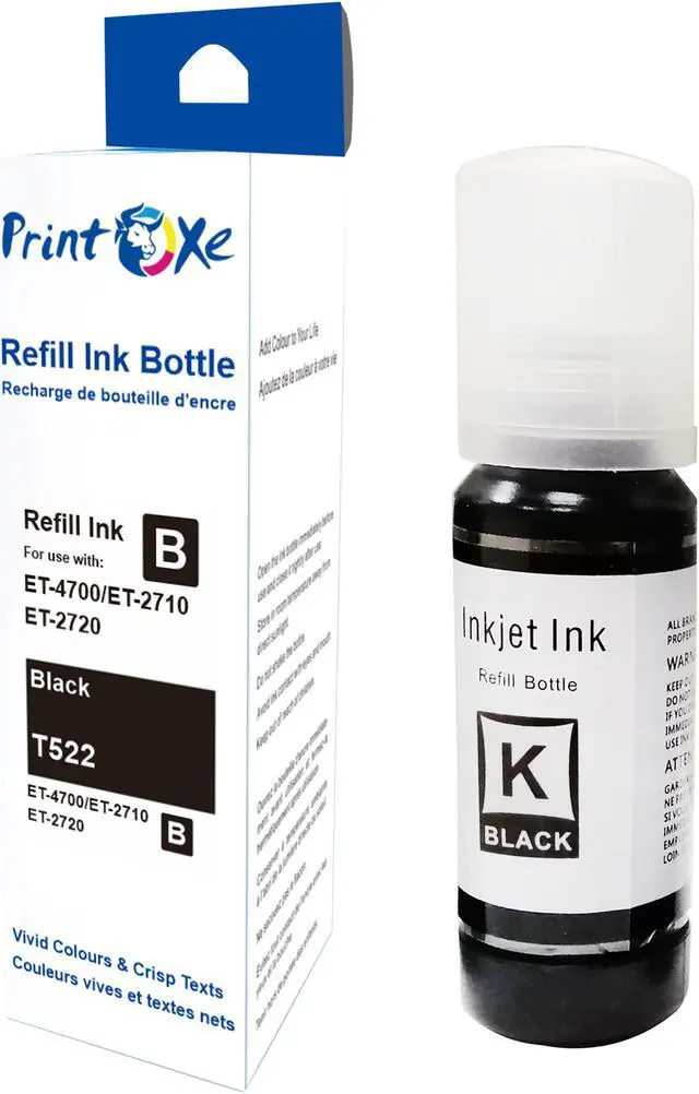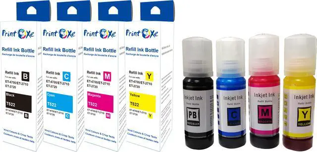 Complete Set of Refill Bottles T522 for Expression Printers Black, Cyan, Magenta, & Yellow High Page Yield and Crispy Printing for Eco Tank Expression ET-2720 ET-2710 and Workforce ET-4700