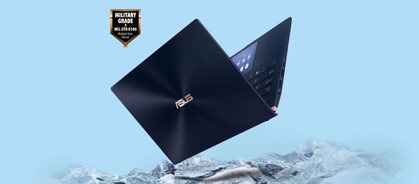 ZenBook 14 meets the ultra-demanding MIL-STD-810G military standard for reliability and durability, undergoing a punishing test regimen that includes extended tests for operation in harsh environments including extreme altitudes, temperatures, and humidity. It has also passed ASUS internal laptop tests that far exceed the standards set by the industry.