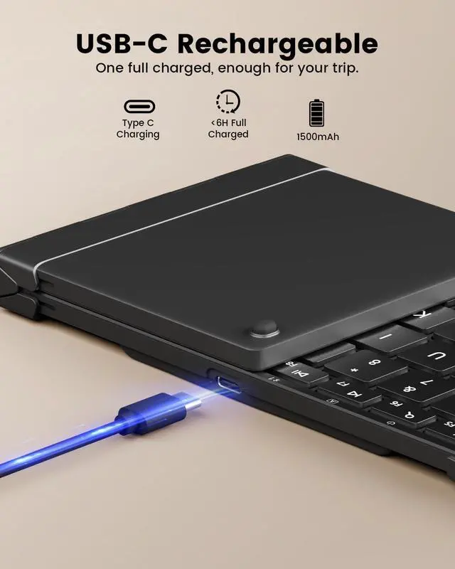 A foldable keyboard with adjust backlit making typing more enjoyable and awesome to look at. Backlight will auto turn off when idle to conserve power.