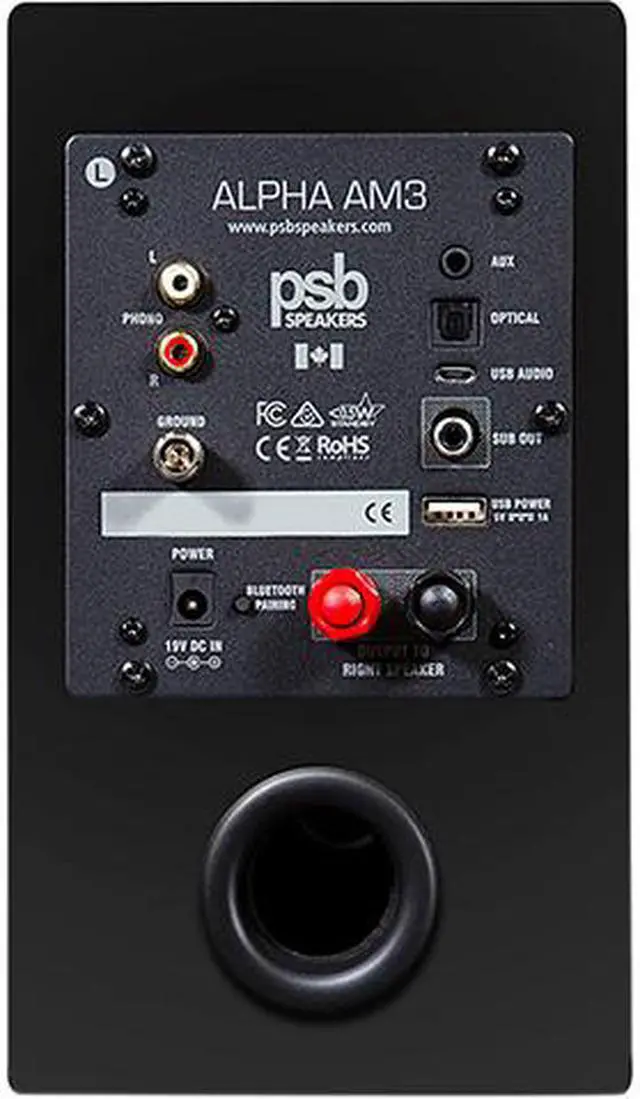 | Features | Behind the Alpha Series First designed and manufactured in a small Canadian town in 1991, the Alpha Series started with the simple idea of creating affordable speakers that were focused purely on performance. With passion and dedication in pursuit of a natural sounding speaker, and by leveraging almost 50 years of research conducted at the Canadian National Research Council, the Alphas are known as one of the world's most iconic speakers and are still the reference benchmark for entry-level hi-fi speakers today. Versatile design The AM3 is simple to set up and use - simply pair and play. Whether you want to stream music from your mobile device, connect to your TV or computer, or hook them up to a turntable via the dedicated RCA phono input, the AM3's will deliver natural, detailed sound with precision and less distortion. Packed with surprising bass, the AM3 features a special 4" woofer and is driven by a 35 watt amplifier. Looking for even deeper bass? Add a subwoofer of your choice and get ready to fill your room with even more impressive sound. Matched components, unmatched performance Leveraging amplification expertise from our sister brands provided the PSB design team the considerable advantage of designing a speaker for a known amplifier. Add the power of DSP and suddenly the frequency response, bass extension and total output are optimized to a remarkable level of performance. Exceptionally few powered speakers share intellectual resources of this magnitude, making the Alpha AM3 a standout in the crowd of powered speakers. Simple and Compact Featuring acoustically transparent detachable magnetic grilles in a choice of matte black or matte white finish, the AM3 offers a timeless design that will seamlessly blend into any décor. The compact size of the AM3 makes it the perfect system for a desk in your office, or a tabletop in your living room or bedroom. |