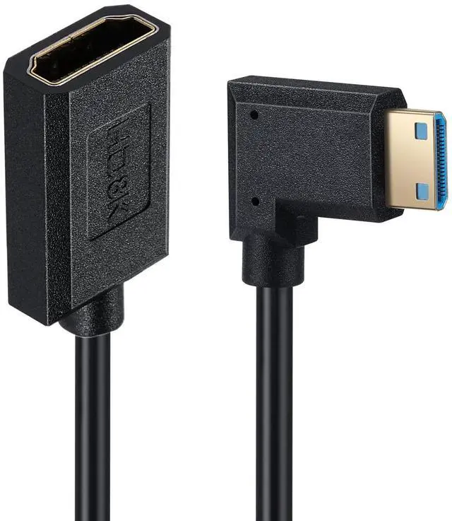 Qaoquda Mini HDMI to HDMI Coiled Cable, High Speed HDMI 2.1 Female to Mini HDMI Male 90 Degree Angle Spiral Adapter Cord 8K 60hz K 120Hz for Camera, Camcorder, Monitor TV, PC and More