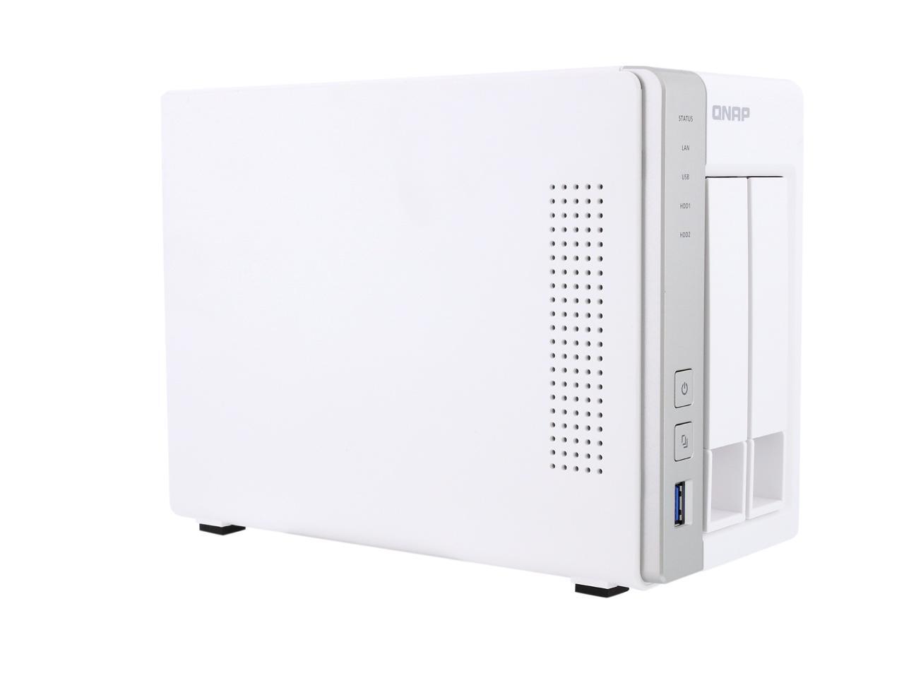 The TS-231P is a powerful yet easy-to-use network storage center for backup, synchronization, remote access, and home entertainment with many feature-rich apps available, including Notes Station (create digital notes on a secure private cloud and share with colleagues and friends), QmailAgent (centralize email account management and back up emails), and Qcontactz (centrally store and manage contact information). All these apps (and more) are available at no extra cost. The dual-core TS-231P features three USB 3.0 ports and dual LAN ports, delivering outstanding multitasking performance to enhance your productivity digital life and offering an ideal storage and backup center as a secure private cloud. Centralizes file storage, sharing and backup with excellent performance Full NAS encryption using volume-based technology and hardware acceleration Supports ...Processor Manufacturer: Annapurna LabsProcessor Type: AlpineProcessor Model: AL-212Processor Core: Dual-core (2 Core)Processor Speed: 1.70 GHzStandard Memory: 1 GBMemory Technology: DDR3 SDRAMEthernet Technology: Gigabit EthernetNumber of Total Expansion Bays: 2Controller Type: Serial ATA/600RAID Supported: YesRAID Levels: 0, 1, JBODTotal Number of USB Ports: 3Number of USB 3.0 Ports: 3Network (RJ-45): YesOperating System: QTS 4.2Protocols: DNSProtocols: TelnetProtocols: DLNAProtocols: IPv6Protocols: FTPSProtocols: PAPProtocols: FTPProtocols: RSyncProtocols: WEBDAVProtocols: CHAPProtocols: SSL/TLSProtocols: AFPProtocols: BonjourProtocols: CIFSProtocols: HTTPSProtocols: SMSCProtocols: NFSv3Protocols: SSHProtocols: SMBProtocols: DHCPProtocols: SMTPProtocols: FXPProtocols: SFTPProtocols: AFP 3.3Protocols: LDAPProtocols: iSCSIProtocols: TFTPProtocols: IPv4Protocols: UPnPProtocols: PPTPProtocols: TCP/IPProtocols: HTTPProtocols: CIFS/SMBProtocols: DDNSProtocols: SNMPHeight: 6.6Width: 4"Depth: 8.9"Form Factor: TowerWeight (Approximate): 2.82 lbPackage Contents: Turbo NAS TS-231P SAN/NAS Server 2 x Ethernet Cables Quick Installation Guide (QIG) Flat Head Screw (for 3.5" HDD) Flat Head Screw (for 2.5" HDD) Adapter Power Cord Limited Warranty: 2 YearPackage Contents Turbo NAS TS-231P SAN/NAS Server 2 x Ethernet Cables Quick Installation Guide (QIG) Flat Head Screw (for 3.5" HDD) Flat Head Screw (for 2.5" HDD) Adapter Power Cord "