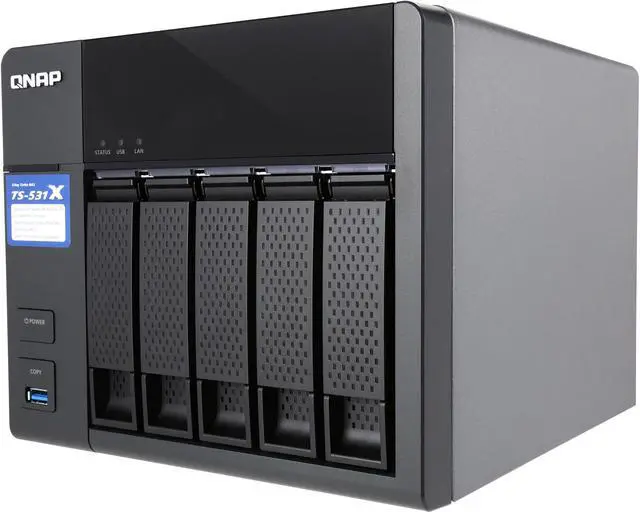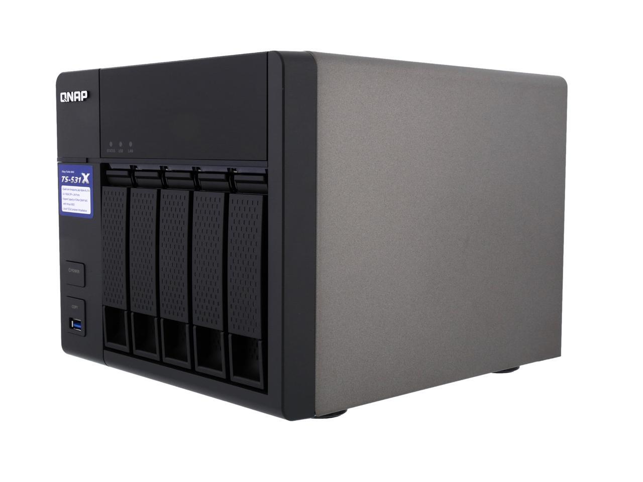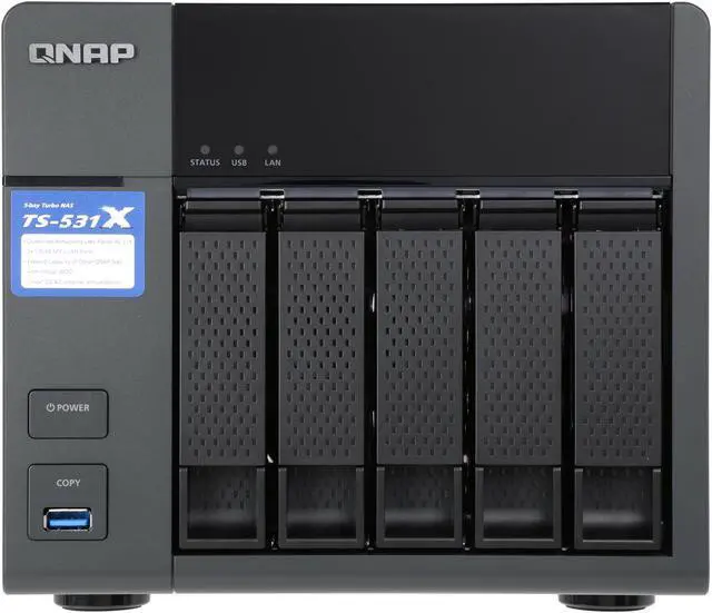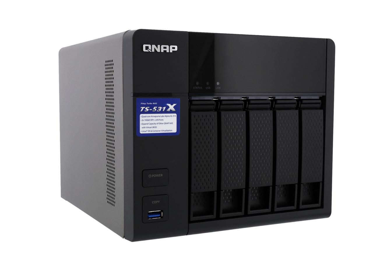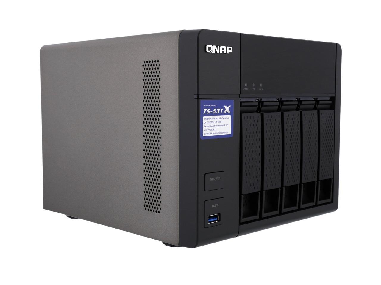 | Features | 10GbE readiness, SSD cache, and hardware-accelerated encryption engine VJBOD allows using the TS-531X to expand the storage capacity of other QNAP NAS Enjoy containerized virtualization and IoT app development with Container Station Build a private cloud to centrally organize & manage files and backup tasks Secure access with VPN Server & VPN Client Quickly find files using a real-time, natural search with Qsirch Centrally manage multiple email accounts with QmailAgent Easily manage contact information on your NAS with Qcontactz Expand the storage capacity to 21 drives by using QNAP expansion enclosures |