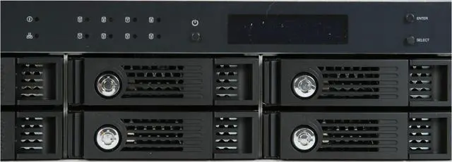 | LEDs | Status, LAN, HDD 1, HDD 2, HDD 3, HDD 4, HDD 5, HDD 6, HDD 7, HDD8 |