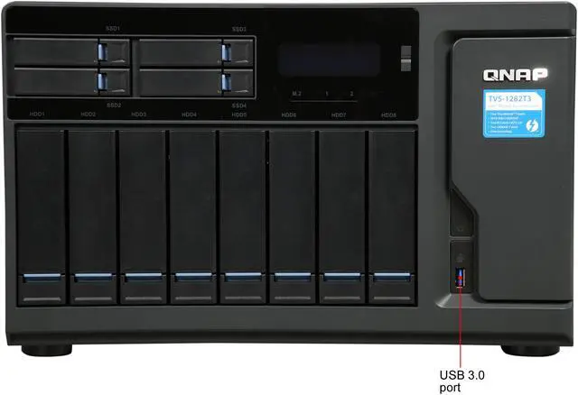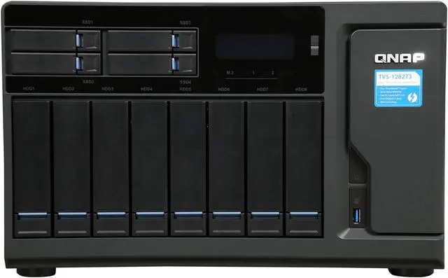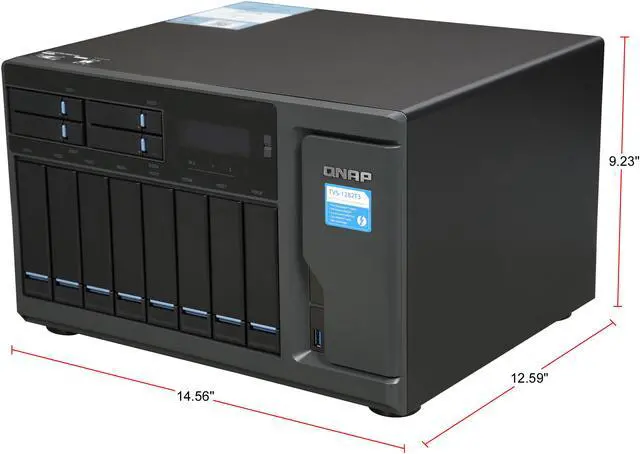 MAIN OVERVIEW FEATURES: Processor Manufacturer: IntelProcessor Type: Core i5Processor Model: i5-7500Processor Core: Quad-core (4 Core)Processor Speed: 3.40 GHzStandard Memory: 16 GBMemory Technology: DDR4 SDRAMEthernet Technology: 10 Gigabit EthernetNumber of Total Expansion Bays: 12Number of 2.5" Bays: 4Number of 2.5"/3.5" Bays: 8Number of Total Expansion Slots: 3Controller Type: Serial ATA/600RAID Supported: YesRAID Levels: 0, 1, 5, 6, 10, Hot Spare, JBODHDMI: YesTotal Number of USB Ports: 5Number of USB 3.0 Ports: 5Network (RJ-45): YesOperating System: QTS 4.3Protocols: DNS,Telnet,DLNA,IPv6,FTPS,WEBDAV,SSL/TLS,AFP,Bonjour,CIFS,HTTPS,FTP,SMSC,NFSv3,SMB,DHCP,SSH,FXP,SMTP,AFP 3.3,SFTP,LDAP,iSCSI,TFTP,IPv4,UPnP,TCP/IP,PPTP,HTTP,DDNS,CIFS/SMB,SNMP,RSyncForm Factor: TowerWeight (Approximate): 25.46 lbPackage Contents: Turbo vNAS TVS-1282T3 SAN/NAS/DAS Server 4 x Ethernet cable 2 x 10Gbase-T Ethernet cable 1 x Power cord Screw for M.2 installation (2 x screw + 2 x bolt) 24 x Flat head screw (for 2.5" HDD) 2 x M.2 SSD Heatsink IR Remote Control Quick installation guide (QIG) Limited Warranty: 2 Year