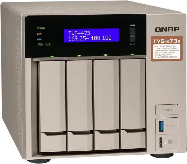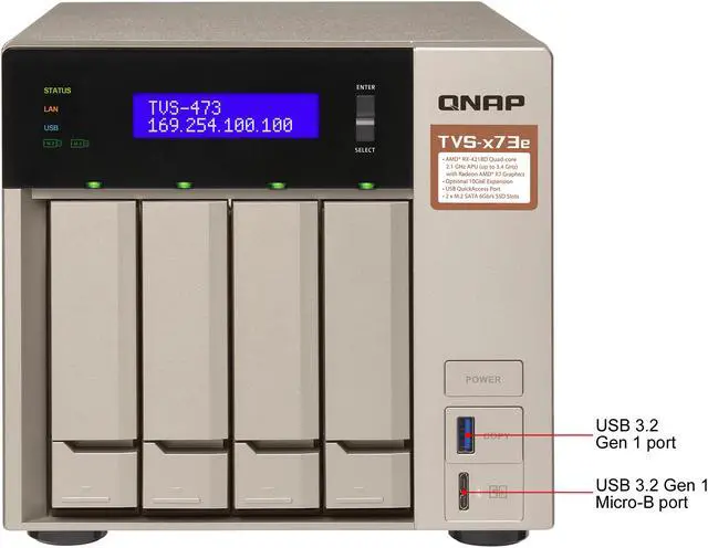 Use the NAS as a PC by attaching a keyboard, mouse, and HDMI display ; Qtier auto-tiering technology and SSD caching enable 24/7 optimized storage efficiency