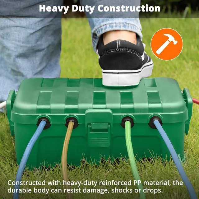Easy Installation: Simply place your electrical connections inside the box, secure cords with integrated clamps, and close the lid for instant protection. Install securely on a wall or place freely on grass and surfaces.