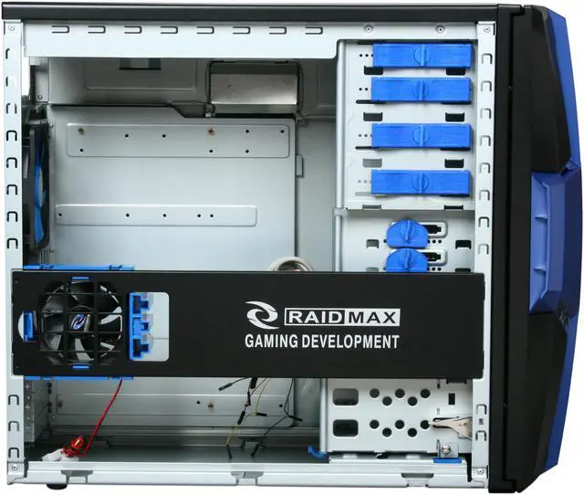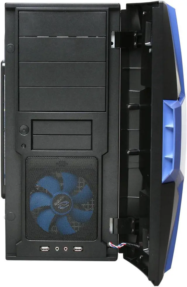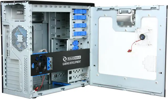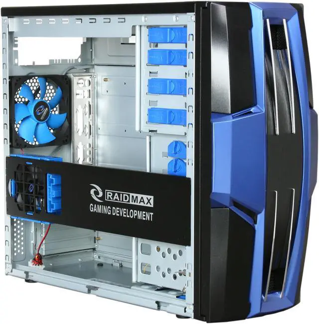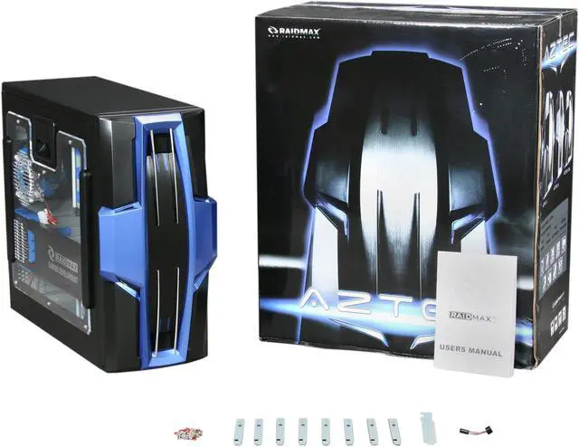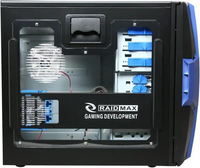 Custom Molded Side Viewing PanelThe Raidmax Aztec ATX-619WU’s fantastic custom-molded side viewing panel provides a direct view of the inner system. The blue fan LEDs add stylishness and eye-catching fun.