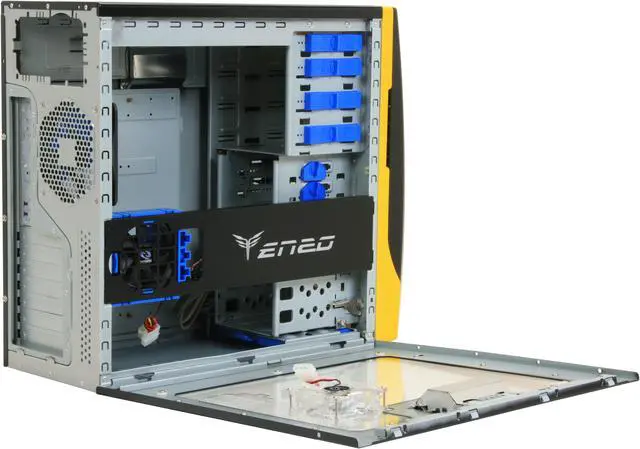 | Features | Tool-less easy installation design Roomy interior space and VGA card holder Removable motherboard tray 2 x 120mm silent front intake and rear exhaust fans 80mm blue LED fan for CPU cooling Pull down butterfly style side panel design |
