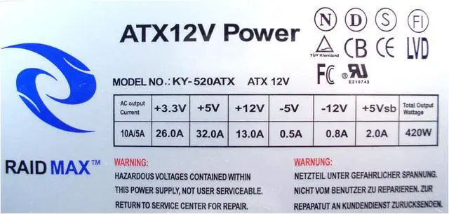 | Power Supply | 420watts PS2 ATX12V Power Supply |