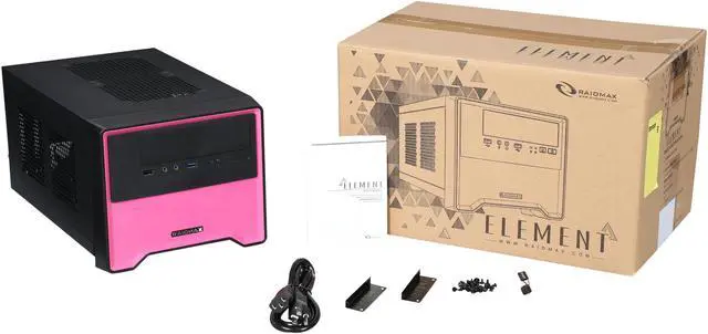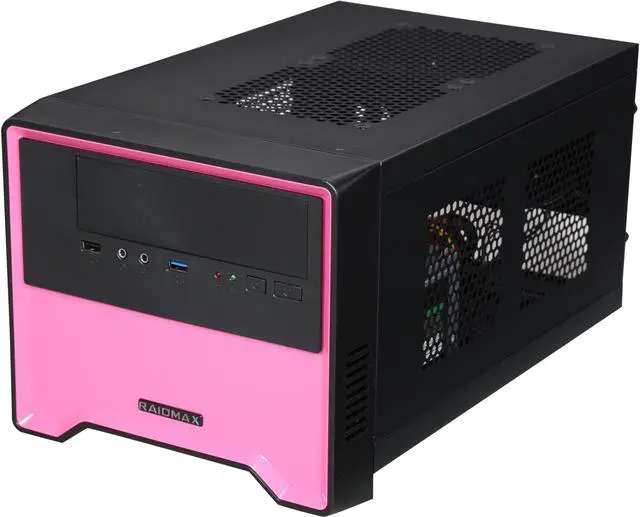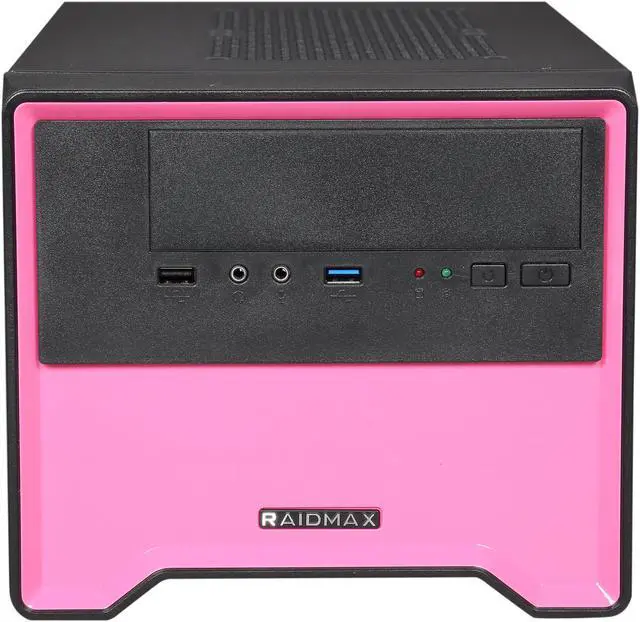 A blend of style and function, the RAIDMAX Element mini-ITX computer case is a great choice for your HTPC or other compact system. It's available in four vibrant colors for the front panel - green, pink, blue and black, which adds lively feeling to the cool, still computing technology. With exclusive wide body design, the Element can accommodate, besides mini-ITX motherboard, 318mm long VGA card, two optional 120mm fans or 240mm radiator at the top, and one 5.25" ODD, two 2.5/3.5 HDDs plus one 2.5" HDD (at the rear fan space, and the fan needs to be removed). A 450W power supply is pre-installed for a mainstream build. Loads of vents on four sides ensure strong, efficient circulation. Front easy-access panel with USB 3.0 rounds off this impressively elegant and functional mini-ITX tower chassis.