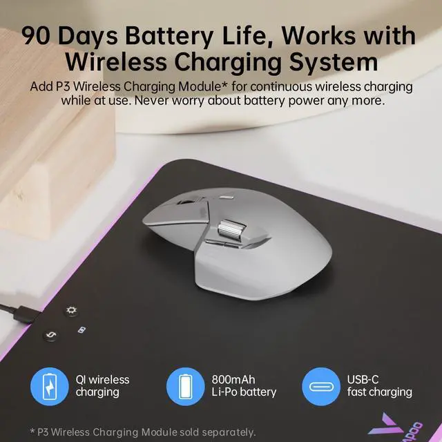 Add P3 Wireless Charging Module* for continuous wireless charging while at use.