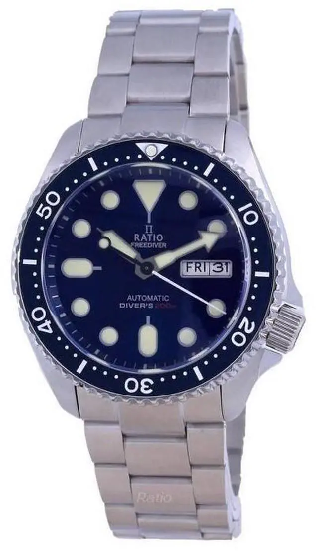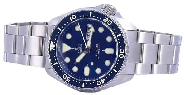 The Ratio FreeDiver Black Dial Stainless Steel Automatic RTA100 200M is a divers watch is every bit the SKX save its movements (no an enhanced version) and the glass, which is a domed sapphire crystal; many more times harder and scratch resistant than the mineral crystal of the SKX. It has the same depth rating as the SKX an equally efficient, if not better.
