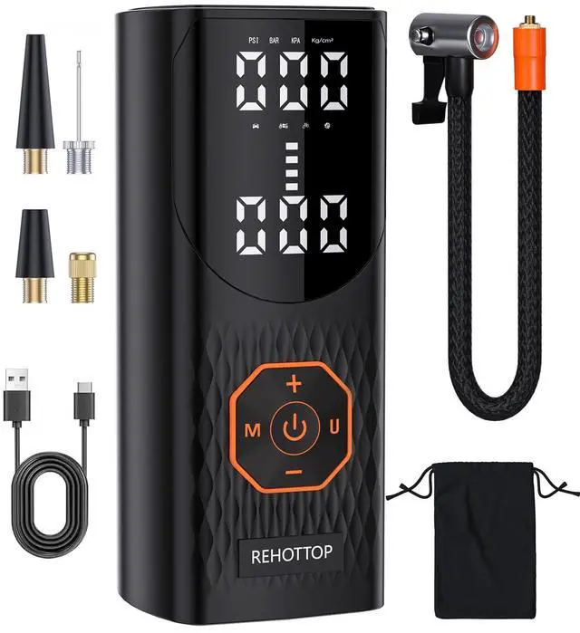 Equipped as a digital air compressor for car auto pump, it offers precise pressure control for all your vehicles needs. This car air compressor tire inflator is battery operated, making it a dependable rechargeable portable tire inflator battery operated car air pump that works efficiently whether at home or on the go. Compatible with various vehicle types, it functions as an air compressor for car ac/dc as well.