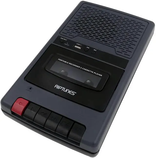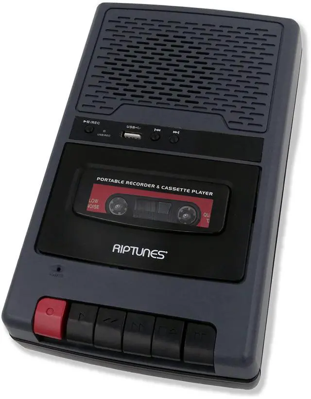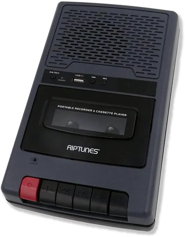 Experience quality music from the Riptunes Shoebox-style Cassette Player/Recorder. Directly play your music from a USB flash drive or convert your favorite music from cassette to digital MP3. This unit is compact and portable so it's easy to pack and take on the go. It has a 3.5mm headphone jack, speaker and retractable carry handle. Use the built-in microphone for custom recording or plug into the Mic port.