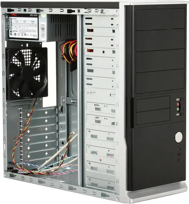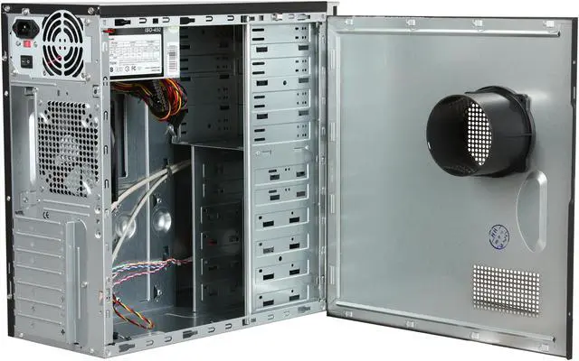 You’ll get seven full-size expansion slots, and a tray that supports ATX motherboards. The front panel features two USB 2.0 ports, and audio jacks. It is equipped with a powerful 350W power supply unit to handle typical system power consumption. Whether you’re building from scratch or looking to relocate your existing system, the Rosewill R424BK is a great value!