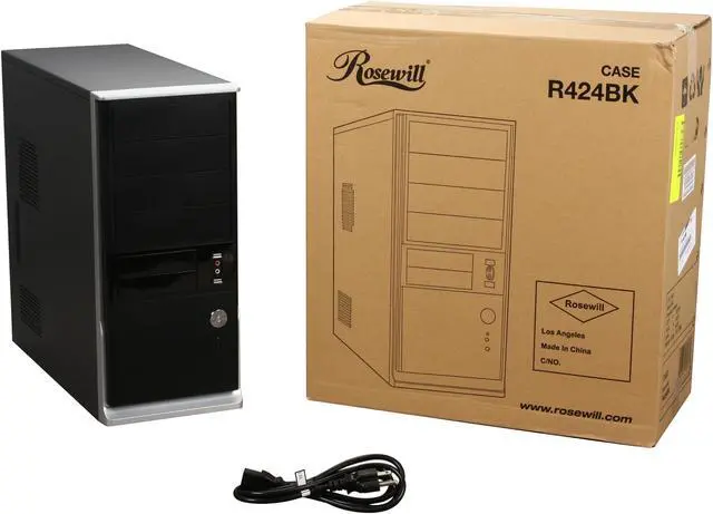 The Rosewill R424BK mid-tower steel case is ideal for computer builders who’d rather spend their money on the contents than on the case! The mid-tower R424BK offers bays for four 5.25” external, two 3.5” external, and four 3.5” internal drives, and keeps it all cool with a 120mm rear fan, side air vents, and air guide to direct the air where it’s most needed.