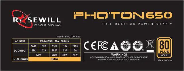 Rosewill PHOTON Series 650W Full Modular Gaming Power Supply, 80 PLUS Gold Certified, Single +12V Rail, SLI & Crossfire Ready - Photon-650