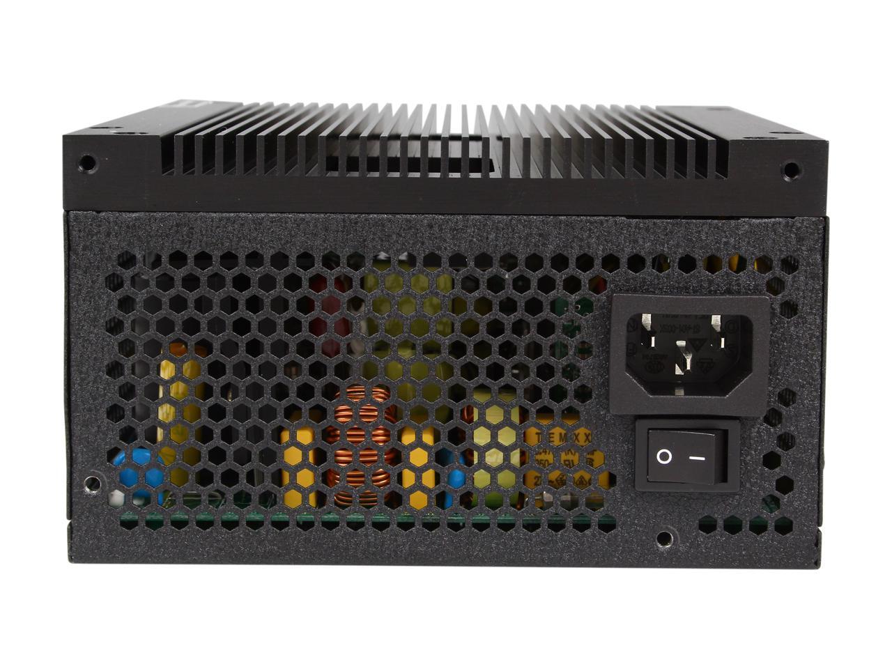 Cons: 170 mm deep. A few smaller cases support only 160 mm. Partially modular (the main motherboard cable, one dual ATX, one cable with two 6/8 pin video card connectors – are permanently attached but of good length). These cables are clearly visible in the third product image. I don’t find either to be a problem with a typical build but some folks might. It would be smart to have a little bit of airflow blown into the computer case to keep the rest of your components happy by pushing any heat out of the case through the PSU. I didn’t see over-temp protection listed on the PSU specs.