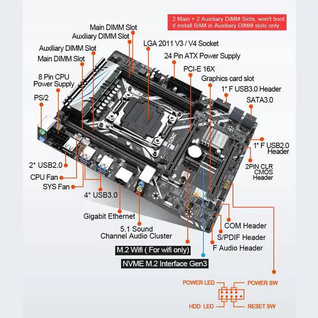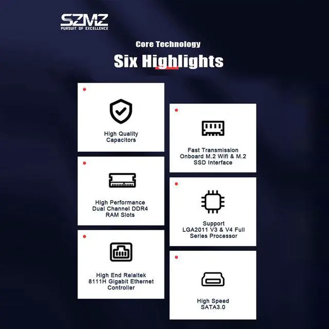 • Feature: Support LGA 2011-V3 Full Series CPU, 4* DDR4 RAM Slot, Support Dual Channel Architecture up to 64GB, 1* S/PDIF Header