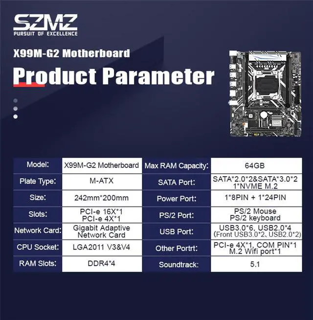 SZMZ X99 G2 motherboard dual channels with NVME SSD M.2 WIFI-M2 USB 3.0 support E5 2678V3 E5 2620V3 E5 2650V3