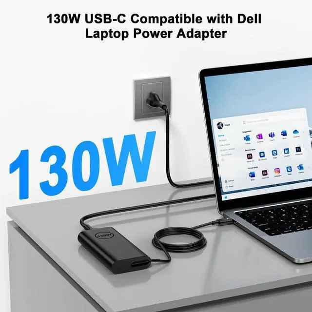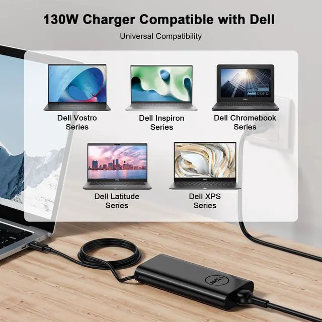 - 130 Watt USB C Laptop Charger Replacement for Dell XPS Latitude Precision
