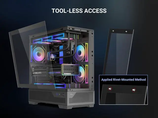 The 4mm tempered glass side panel showcases your custom build and vibrant lighting, while the thickened SPCC steel frame ensures long-lasting durability.