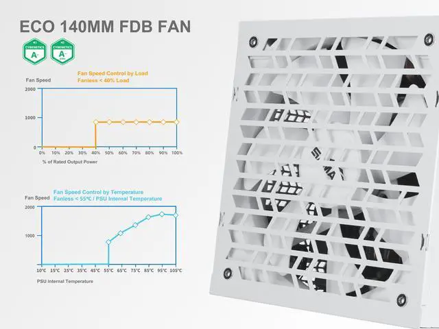 140mm FDB Fan - Silent operation under 40% load with ECO mode