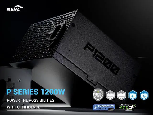 SAMA P1200W ATX 3.1 Power Supply, 1200W, Cybenetics Platinum Standards, PCIE 5.1 Ready, Full Modular, 1200W Gaming PSU, Premium Japanese Capacitor, FDB Fan, Black version