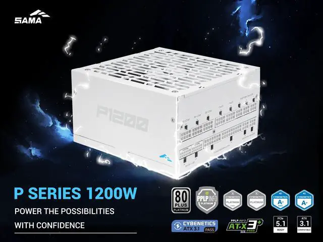 SAMA P1200W ATX 3.1 Power Supply, 1200W 80 PLUS & Cybenetics Platinum certification, PCIE 5.1 Ready, Full Modular, 1200W Gaming PSU, Premium Japanese Capacitor, FDB Fan, White version