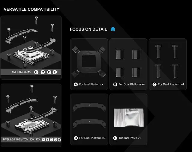 | CPU Socket Compatibility | AMD Socket AM4 / AMD Socket AM5 / Intel LGA 1150 / Intel LGA 1151 / Intel LGA 1155 / Intel LGA 1156 / Intel LGA 1200 / Intel LGA 1700 / Intel LGA 1851 |