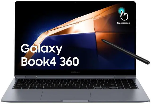 Samsung Galaxy Book4 360 NP750QGK-KG2CA laptop Intel® Core 5 Processor 120U (1.4 GHz up to 5.0 GHz 12 MB Smart Cache) 15.6" Full HD 1920 x 1080 AMOLED Touchscreen 16 GB LPDDR5x-SDRAM 256 GB SSD Moonstone Gray Bluetooth v5.3, Wi-Fi 6E8, 802.11 ax 2x2. 1 HDMI, 2 Thunderbolt 4, 1 USB3.2, MicroSD Multi-media Card Reader, 1 Headphone out/Mic-in Combo. Stereo Speakers ( 2 W x 2 ) Windows 11 Home Windows 11 Home