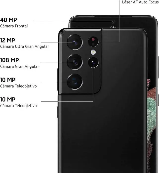 Snap super high-res stunners. Find beauty with the most powerful zoom on a smartphone. And capture studio-quality portraits. Galaxy S21 Ultra 5G has a total of four rear cameras and one 40MP selfie camera. The rear cameras include one 108MP Wide-angle Camera, one 12MP Ultra Wide Camera and two 10MP Telephoto Cameras.