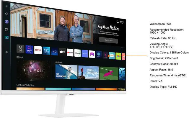Effortless entertainment. Enjoy Netflix, YouTube and other streaming services by simply connecting the monitor to WiFi. Samsung TV Plus also offers free live and on-demand content with no downloads or sign-up needed, while Universal Guide provides personalized content recommendations.