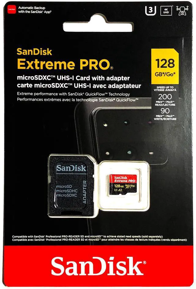 Capture fast-action photos or shoot 4K UHD video with write speeds of up to 90MB/s. The SanDisk Extreme PRO microSDXC UHS-I Card lets you shoot more and faster.