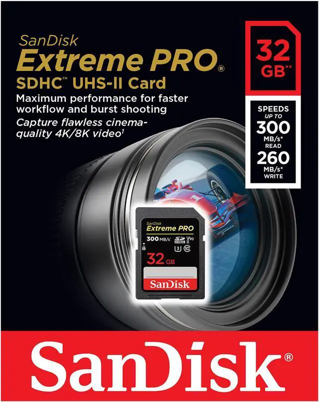 Speeds of up to 300MB/s Read and 260MB/s Write For enhanced post-production workflow efficiency, SanDisk Extreme PRO SDHC and SDXC UHS-II cards deliver extremely fast transfer speeds of up to 300MB/s. Write speeds of up to 260MB/s handle rapid shots, sequential burst mode, and RAW+JPEG capture with ease.