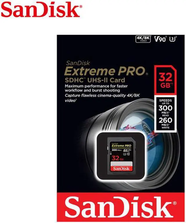 | Features | Tap into Pro Performance Professional photographers and videographers need professional equipment to tackle every demanding stage of a production. The SanDisk Extreme PRO SDHC/SDXC UHS-II cards deliver the outstanding performance professionals need to streamline every creative project from pre- to post-production.