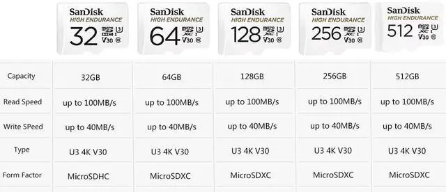 Record and save more Full HD or 4K videos with capacities up to 256GB